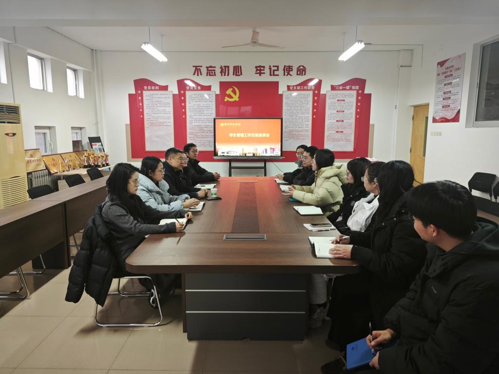 1月16日下午,人工智能学院党支部副书记丁盛一行来到qy球友会官方网站开展学生管理工作交流。qy球友会官方网站党总支副书记郝磊及全体辅导员热情接待并进行交流座谈。