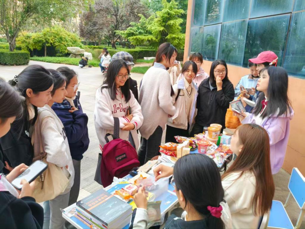 活动现场气氛热烈,同学们纷纷带着闲置的文具、零食、护肤品等物品汇聚于qy球友会官方网站楼前。大家在摊位间流连,或分享物品故事,或愉快交换彼此心仪的物件,处处洋溢着互助与分享的温暖。此起彼伏的欢笑声与交谈声,让闲置资源在市集中“活”了起来,成为连接彼此情感的温馨纽带。