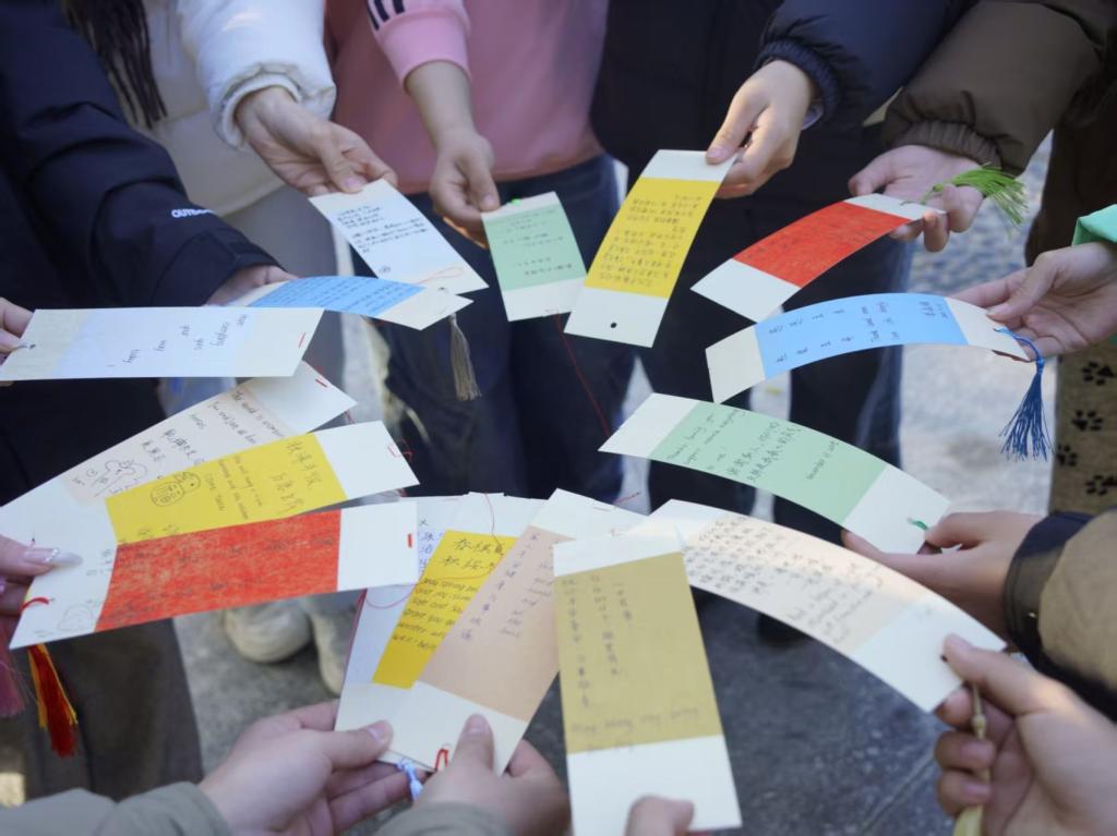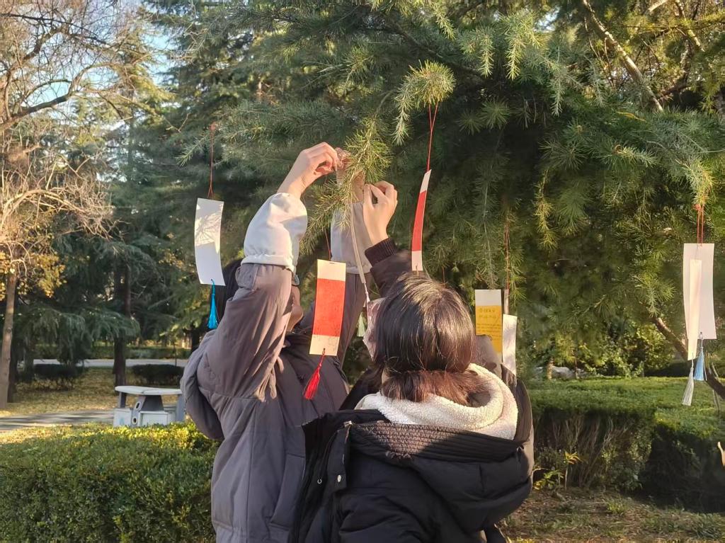 书写环节结束后,同学们将承载感恩的卡片亲手悬挂于感恩树上,使之成为校园中一道传递温暖的风景。活动过程中,志愿者们全程维持秩序,引导参与者书写积极健康、文明得体的内容,并倡导爱护树木,确保整个活动在环保、安全的前提下顺利开展。