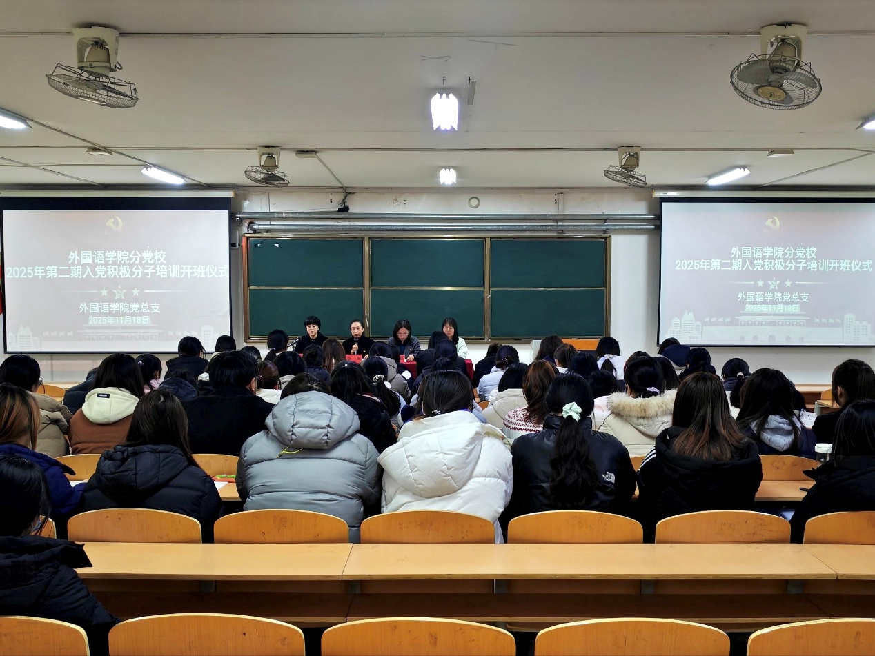 仪式在庄严的国歌声中启幕。张丽作动员讲话,对全体学员表示欢迎,强调集中培训是锤炼党性、向党组织靠拢的关键抓手,并提出四点要求:一要筑牢思想根基“真信”,深学细悟党的创新理论并做到入脑入心;二要锤炼过硬本领“真学”,紧扣外语专业特色深化理论学习;三要坚持知行合一“真干”,以实践行动诠释入党初心;四要严守纪律规矩“真严”,以优良学风确保培训实效。入党积极分子代表岳梦冉发言,她代表全体学员表态,将严守培训纪律、端正学习态度,扎实钻研党的理论;立足外语专业所长勇担时代使命,以实际行动践行“请党放心,强国有我”的誓言。